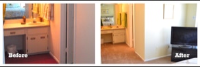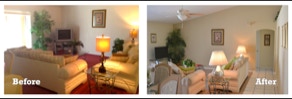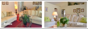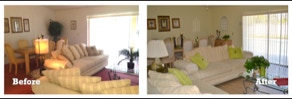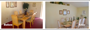 An eye catching repainting of the interior of the house made a dramatic change. Accent walls were added to all the rooms and the accent color was used to highlight the plant shelf.
