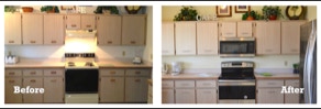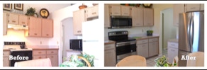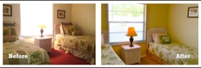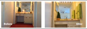 The rose colored carpets in the Great Room were replaced with fresh laminate floors designed to coordinate with the kitchen cabinets.