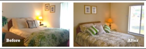 In the bedrooms the rose carpet was replaced with new carpets in a neutral tone that looks great with the new paint. New plantation style blinds were also installed into all three bedrooms.